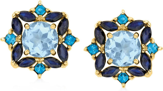 Galaxy Be Mine Sapphire & Sky Blue Topaz 18kt Gold Earrings